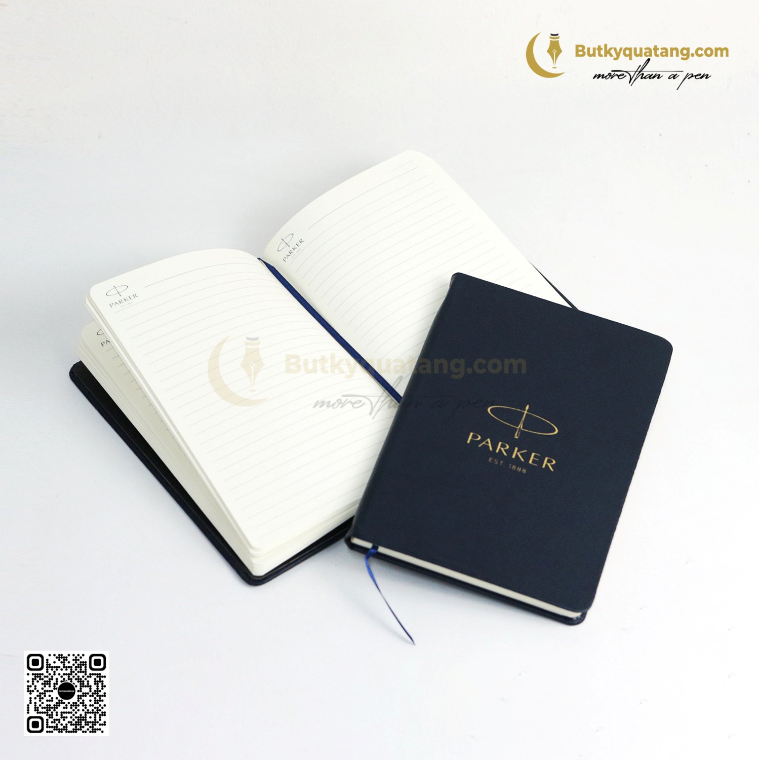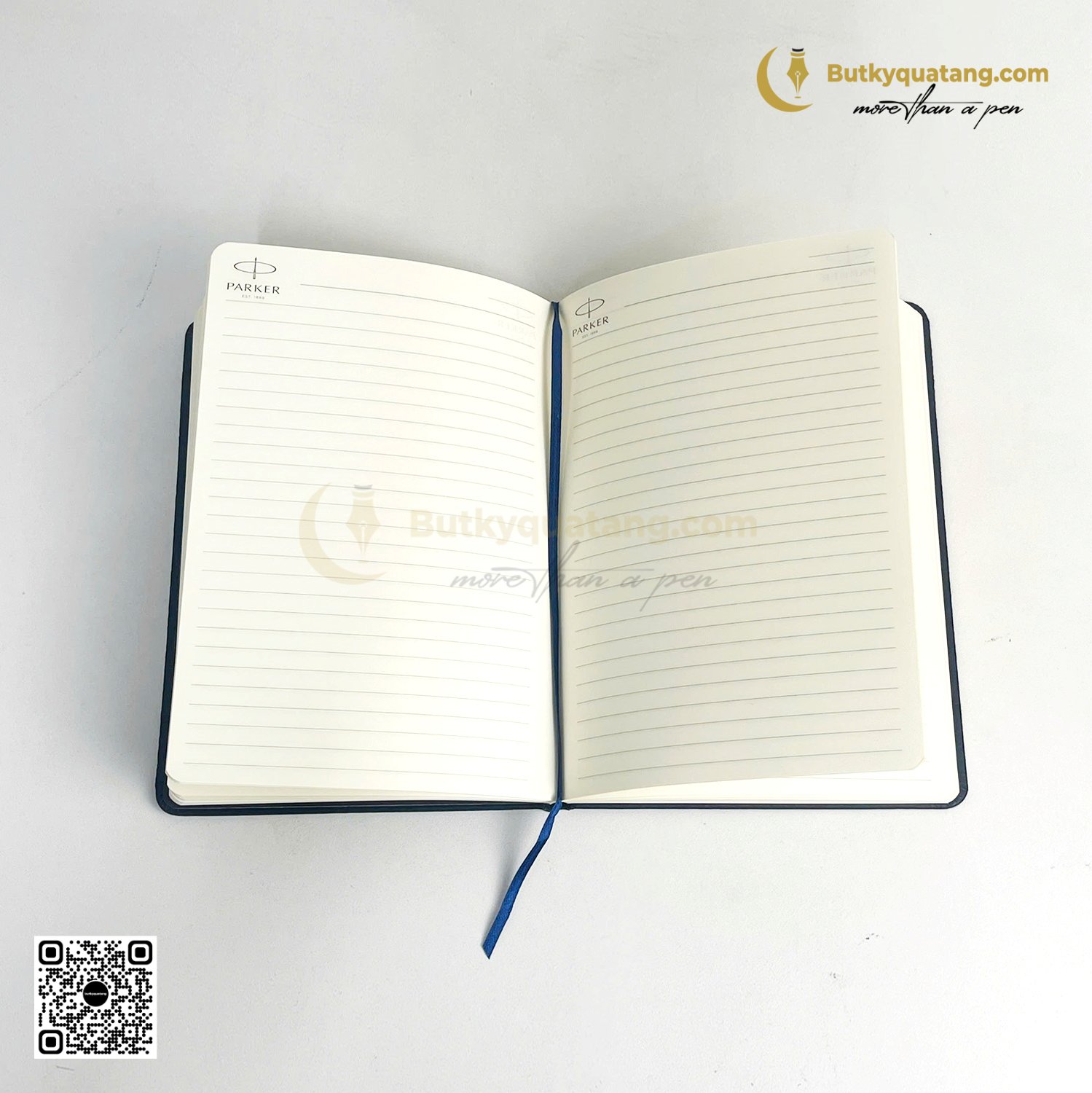 Bên trong sổ là các trang giấy kẻ dòng, in logo thương hiệu Parker ở đầu trang, tạo cảm giác đồng bộ và chuyên nghiệp khi sử dụng. Giấy dày dặn, viết không lem, không thấm mực, phù hợp với cả bút bi, bút máy hay bút gel. Dây đánh dấu trang đi kèm giúp dễ dàng ghi nhớ nội dung quan trọng.